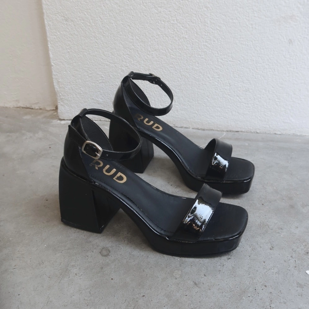 Sandalias de eco cuero charol negro